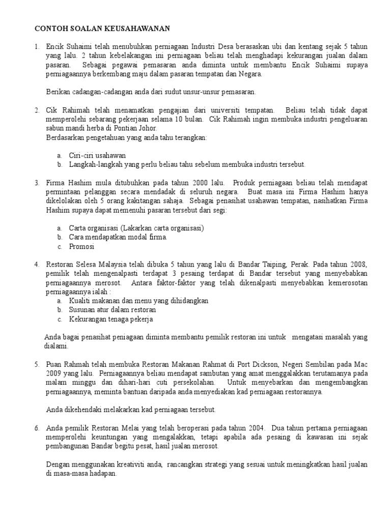 Contoh Soalan Keusahawanan Pdf